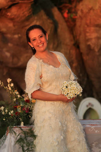 Usar mechas de lã e fazer um vestido de noiva em feltro foi uma aventura compartilhada com a ousadia e criatividade de Tania Contursi.